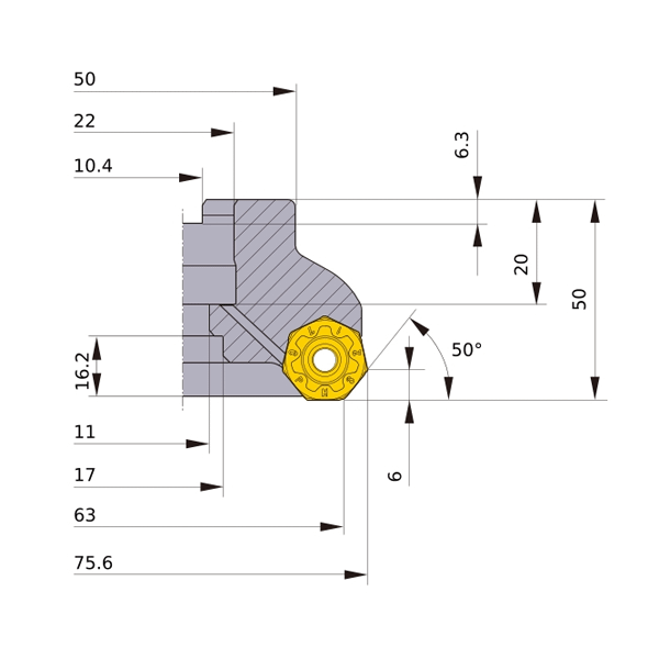 Ta głowica frezarska AHX640S-063A05AR Mitsubishi przeznaczona jest dla unikatowych, 14-krawędziowych płytek NNMU20 … .